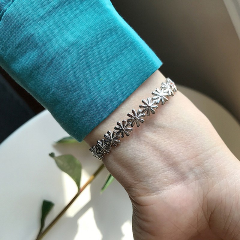 Crafted from S925 sterling silver, its chic design featuring daisy motifs adds a touch of whimsy and personality to any outfit, making it a must-have accessory for trendsetters.