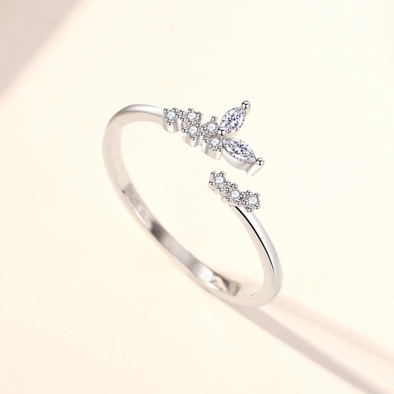 • Butterfly Ring with Diamond Inlay, Niche Index Finger Ring, Fashionable Open Design