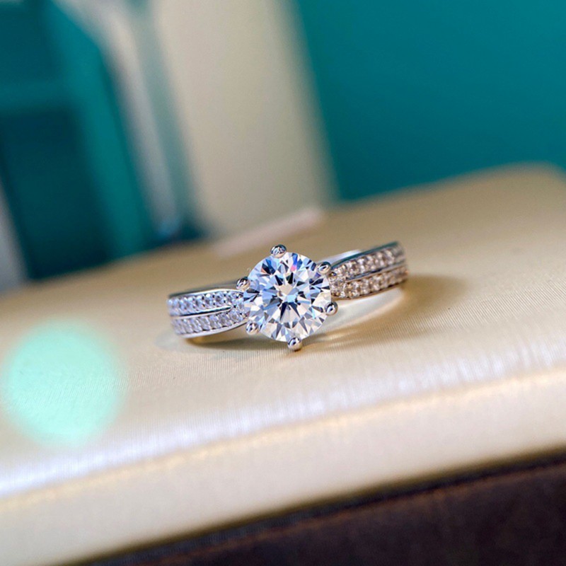 This stunning engagement ring features a six-prong setting adorned with sparkling diamonds, crafted from high-quality S925 silver.
