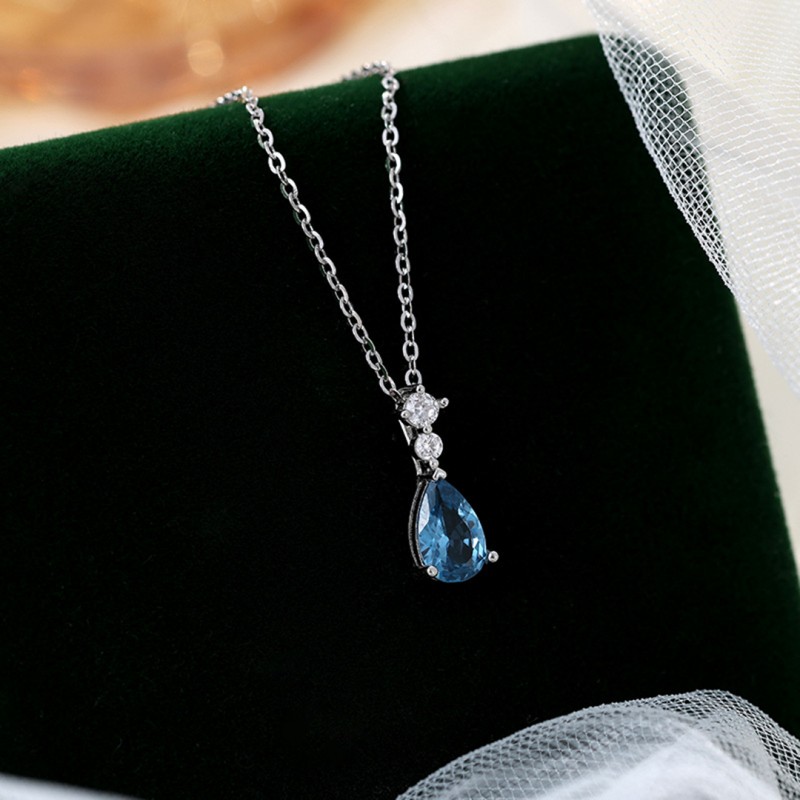 Elevate your style with this luxurious necklace featuring a water drop-shaped cubic zirconia pendant suspended from a high-quality 925 pure silver chain.
