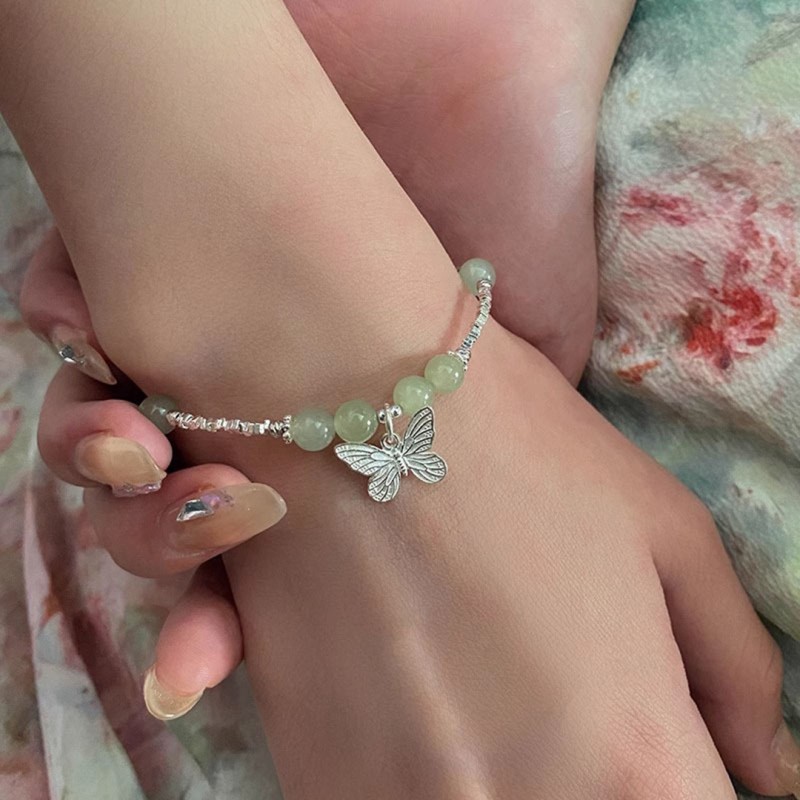 The s925 sterling silver provides durability and serves as a modern base for the bracelet, while the Hetian jade butterfly and silver chips add a touch of natural and cultural significance to the design.