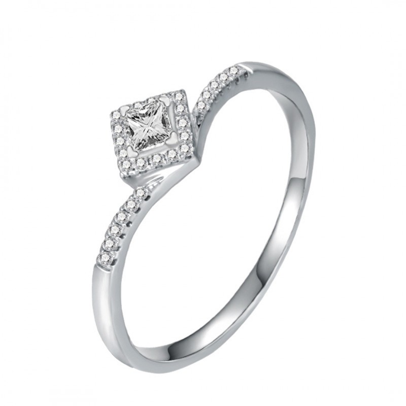 The square zircon stone, set in lustrous 18K white gold, captures the essence of romance and elegance.